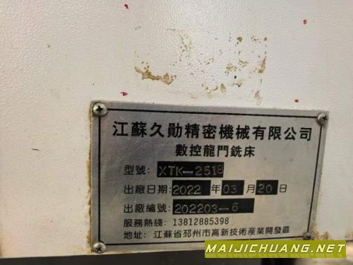 | 江苏久勋2518龙门加工中心两一线硬导轨.X-Y轴55线轨BT. |
